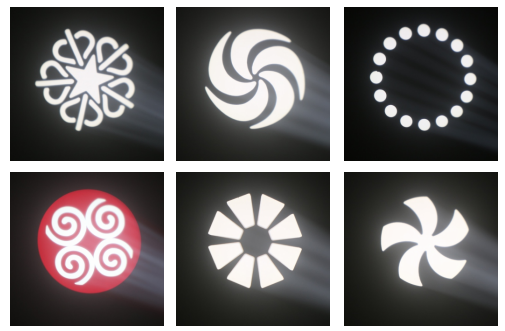 – 1 Rotation Gobo Wheel: 6 gobos +white, wheel rotation and shake